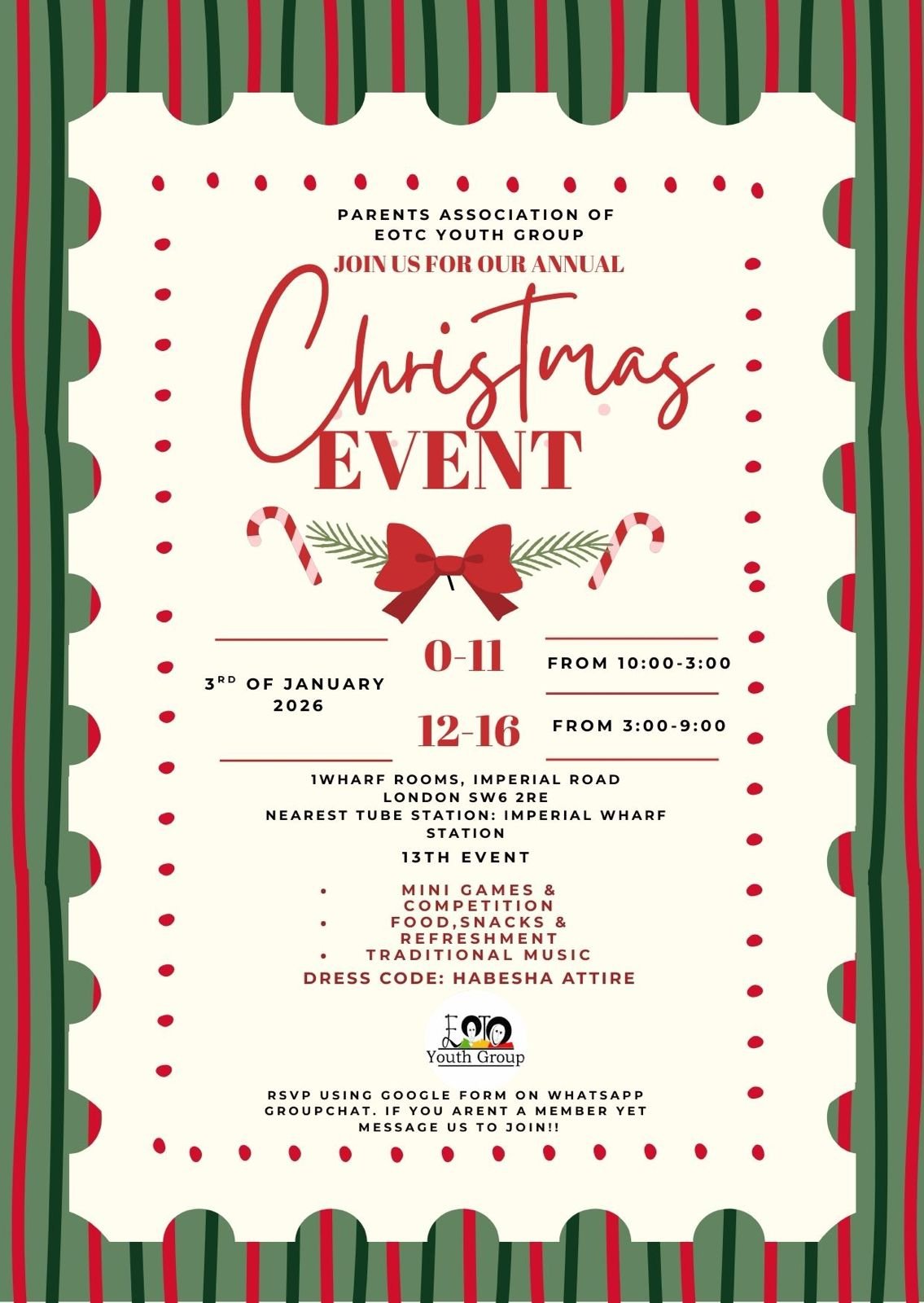 Celebrate Ethiopian Christmas (Genna) with the EOTC Youth Group at our 13th Annual Christmas Event on Saturday, 3rd January 2026 🎄